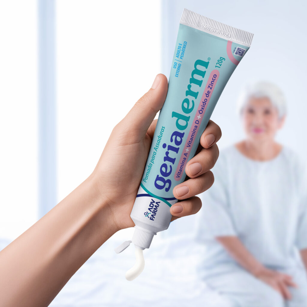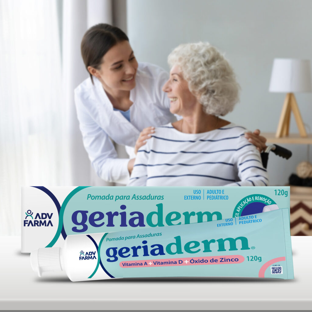 POMADA PARA ASSADURAS GERIADERM É UM MEDICAMENTO. SEU USO PODE TRAZER RISCOS. PROCURE O MÉDICO E O FARMACÊUTICO. LEIA A BULA. Uso externo. Não utilizar em caso de hipersensibilidade aos componentes da fórmula. Leia a bula/rotulagem. Ao persistirem os sintomas, o médico deverá ser consultado. Todo medicamento deve ser mantido fora do alcance de crianças. Medicamento notificado conforme RDC 576/2021.